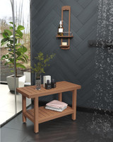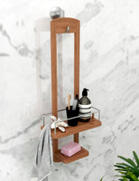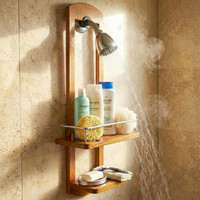 This product is lovely, it fits in the shower perfectly. Its small but not too small, there is just enough room to fit on the necessities. But if you have 5 different shampoos it might be a little small. Beautiful wood, great product.