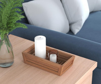 A classy solid teak storage container for your bathroom, shower, patio, or pool area. This teak amenities tray is the perfect solution for those small items that you don't want lying around the counter, such as toiletries, pool items, small towels, napkins, paper towels, keys, serving items, or anything else you can think of! The teak bathroom tray is made entirely using sustainably harvested teak wood. Extremely durable and naturally water-resistant, this teak storage tray is versatile enough to use anywhere. We offer a 30 day satisfaction guarantee and 5 year warranty on all of our products.