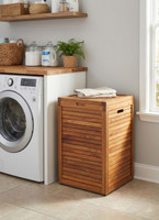The Original Spa™ Large Size Teak Laundry or Storage Hamper from Aqua Teak is the perfect piece of bathroom teak furniture and can be used for laundry, as a toy chest, or as a lovely teak bench with storage. This teak laundry hamper also includes a removable, sturdy Velcro drawstring bag for easier storage and transportation of laundry or other items.